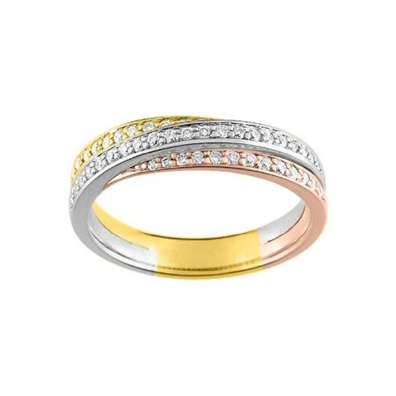 Anell Or Tricolor 18kts Argyor-MRM (18)3R011TB2 Aliança 3 Fileres Amb Diamants GH-P1 0,32ct