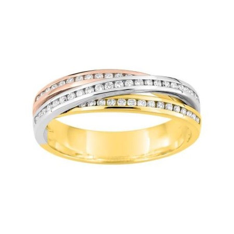 Anell Or Tricolor 18kts Argyor-MRM (18)3R012TB4 Aliança 3 Fileres Amb Diamants GH-P1 0,32ct