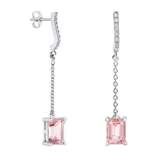 Arracades Or Blanc 18kts Rectangle Argyor MRM 8x6mm (18)79B0507TB3 Topais Rosa. Arracades fabricades en or blanc 18kts 750/000 (18K). Pes 3,34gr. Capçals amb forma de barreta amb 10 topacis blancs, total 20 topacis de 1,10mm. Tancament pressió. Disseny central de cada pendent amb cadena de 1,9cm. Acabats amb dos Topacis en talla maragda 8x6mm de color rosa. Certificat d'autenticitat i garantia de qualitat als materials de fabricació. Ref (18)79B0507TB3