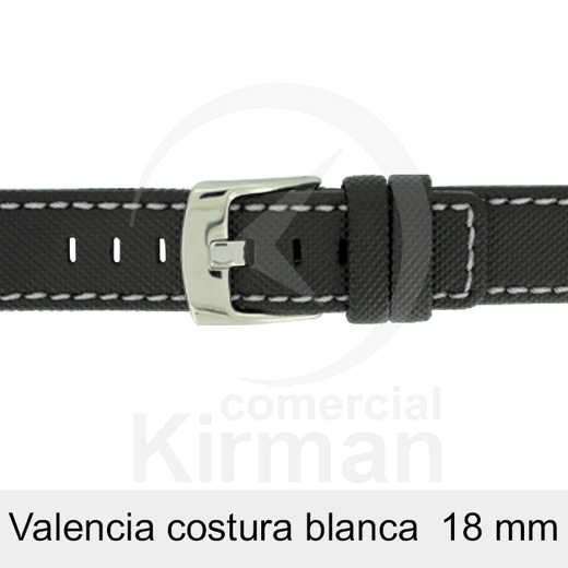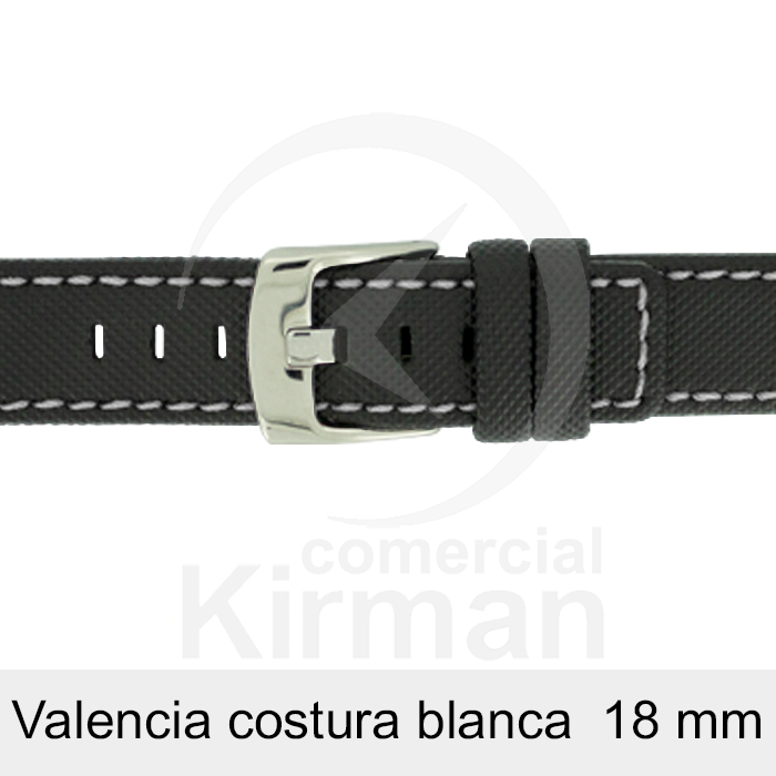 Correa Reloj Neopreno 18mm 133142N-B Negro Costura Blanca Valencia