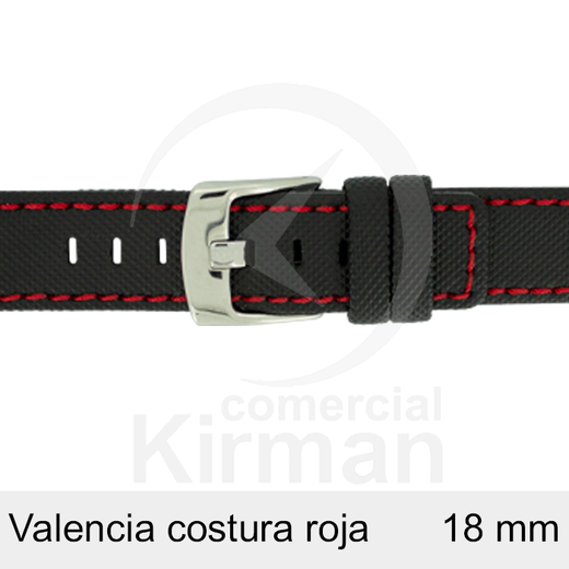 Correa Reloj Neopreno 18mm 133142N-R Negro Costura Roja Valencia