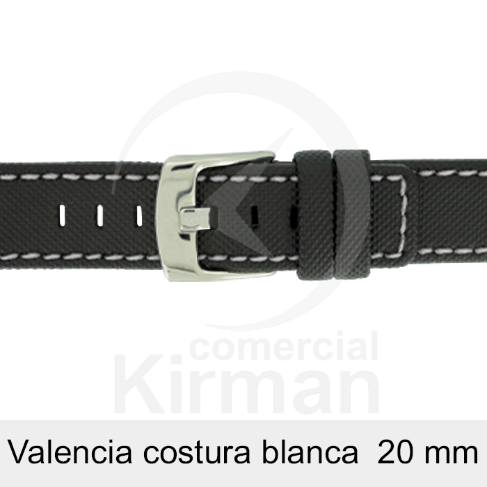 Correa Reloj Neopreno 20mm 134142N-B Negro Costura Blanca Valencia