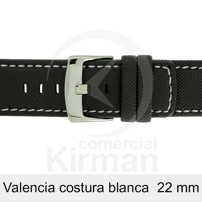 Correa Reloj Neopreno 22mm 139142N-B Negro Costura Blanca Valencia