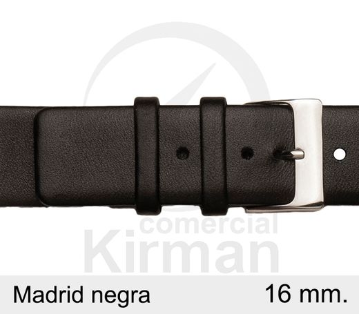 Correa Reloj Piel 16x75/115mm 132122N Madrid Negra Cierre Hebilla Acero