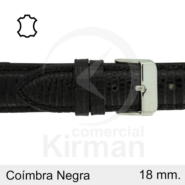 Correa Reloj Piel 18x75/115mm 133136N Coímbra Negra Cierre Hebilla Acero