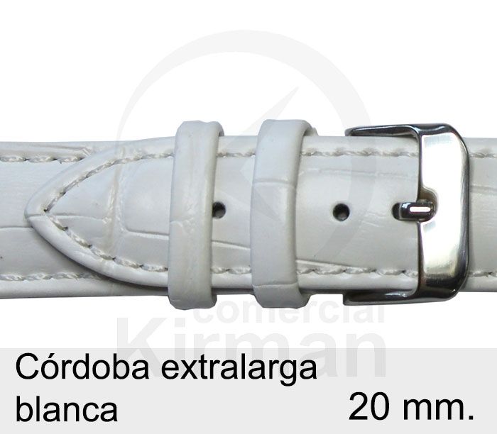Correa Reloj Piel 20x80/120mm 134126B Córdoba Extralarga Blanca Cierre Hebilla