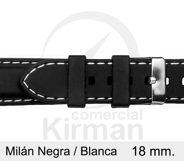 Correa Reloj Silicona 18x80/120mm 135150/18N-B Milán Negra/Blanca Cierre Hebilla. Correa de reloj fabricada en silicona. Diseńo Milán negra/blanca cierre de hebilla. Medida 18x80/120mm. Producto de excelente calidad, con garantía contrastada que asegura su fiabilidad y durabilidad. Ref 135150/18N-B