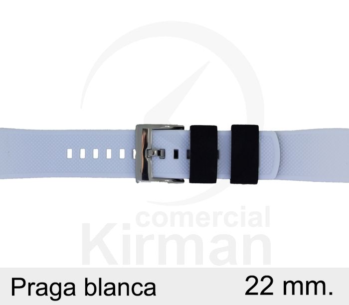 Correa Reloj Silicona 22x75/125mm 135162/22B-N Praga Blanca Cierre Hebilla
