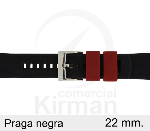 Correa Reloj Silicona 22x75/125mm 135162/22N-R Praga Negra Cierre Hebilla