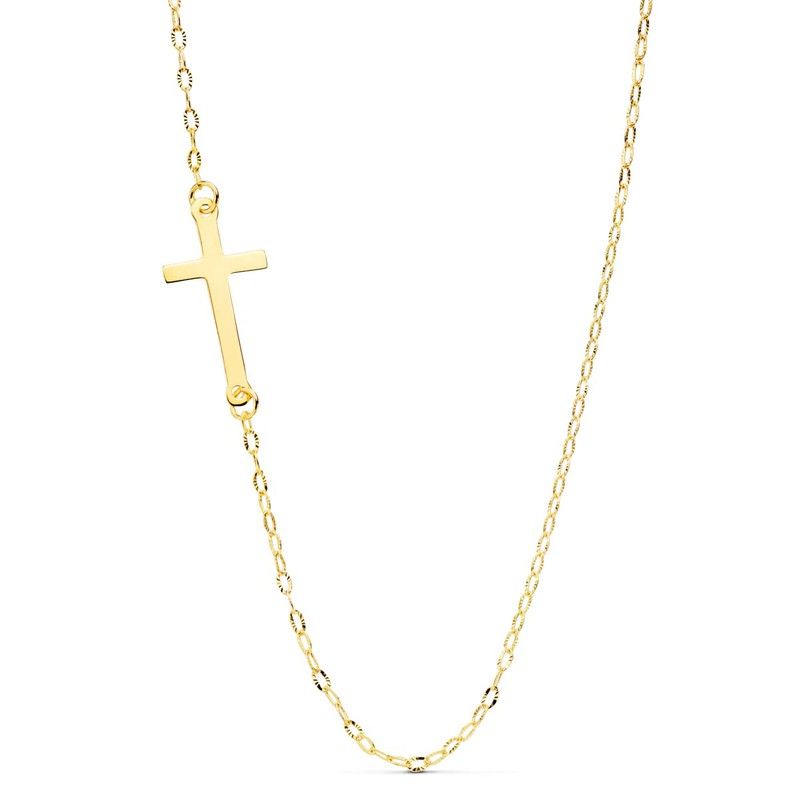 Collaret Or 18kts Creu 17X8mm Cadena Forçada 42cm 28000003. Gola fabricada en or de 18kts amb disseny de creu i cadena forçada. Pes Aproximat 1.25 grs. Certificat d'autenticitat i garantia de qualitat als materials de fabricació. Ref. 28000003