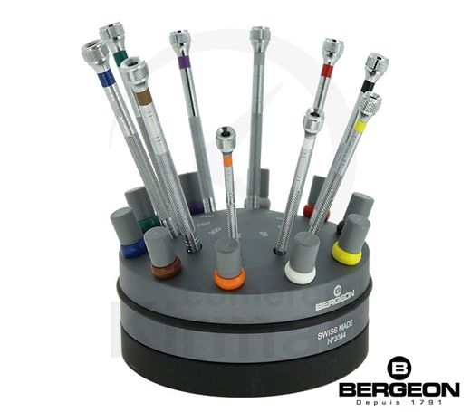 Juego Destornilladores Bergeon Acero 0.50-3.00mm 45053 (10) Unidades Punta Plana + (10) Unidades De Recambio De Precisión. Juego destornilladores fabricado en acero. Diseño de juego destornilladores (10) unidades punta plana + (10) unidades de recambio. Tamaño: 0.50-3.00mm. Base giratoria. Producto de excelente calidad, con garantía contrastada que asegura su fiabilidad y durabilidad. Ref 45053
