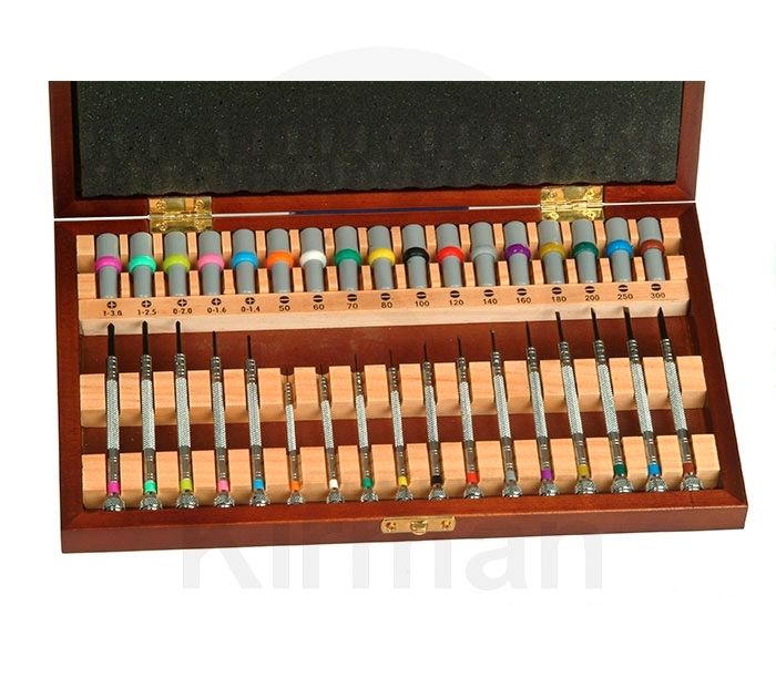 Juego Destornilladores Latón Niquelado 1.40-3.00 mm 45087 (17) Unidades Punta plana/philips + (17) Unidades De Recambio De Precisión