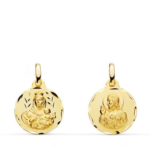 Medalla Escapulari Verge del Carme Cor Jesús Tallat Or 18kts 14mm P5003-314