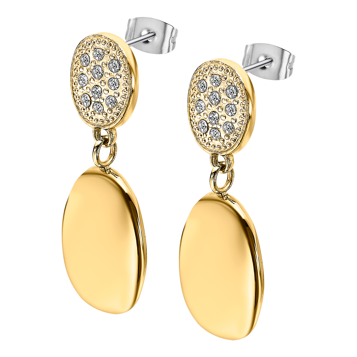 Pendientes Acero Dorado Lotus Style Mujer LS2567-4/2 Circonitas Colgante Liso. Pendientes fabricados en acero inoxidable dorado. Diseño de circonitas con colgante liso. Medida: 3,40cm. Cierre presión. Certificado de autenticidad y garantía de calidad en los materiales de fabricación. Ref LS2567-4/2
