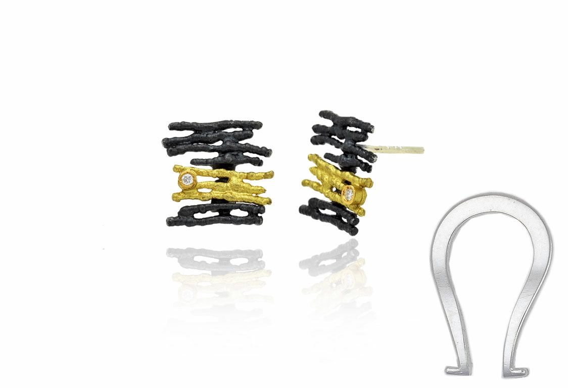 Pendientes Oro 18kts Y Plata Arior Diluvi Cierre Omega Con Diamantes 3641021XPO