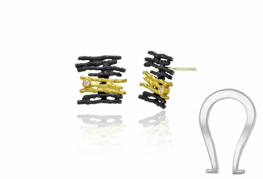 Pendientes Oro 18kts Y Plata Arior Diluvi Cierre Omega Con Diamantes 3641021XPO. Pendientes fabricadas en Oro de 18kts 750/000 (18K). Diseńo de Diluvi Cierre Omega Con Diamantes. Certificado de autenticidad y garantía de calidad en los materiales de fabricación. Ref 3641021XPO