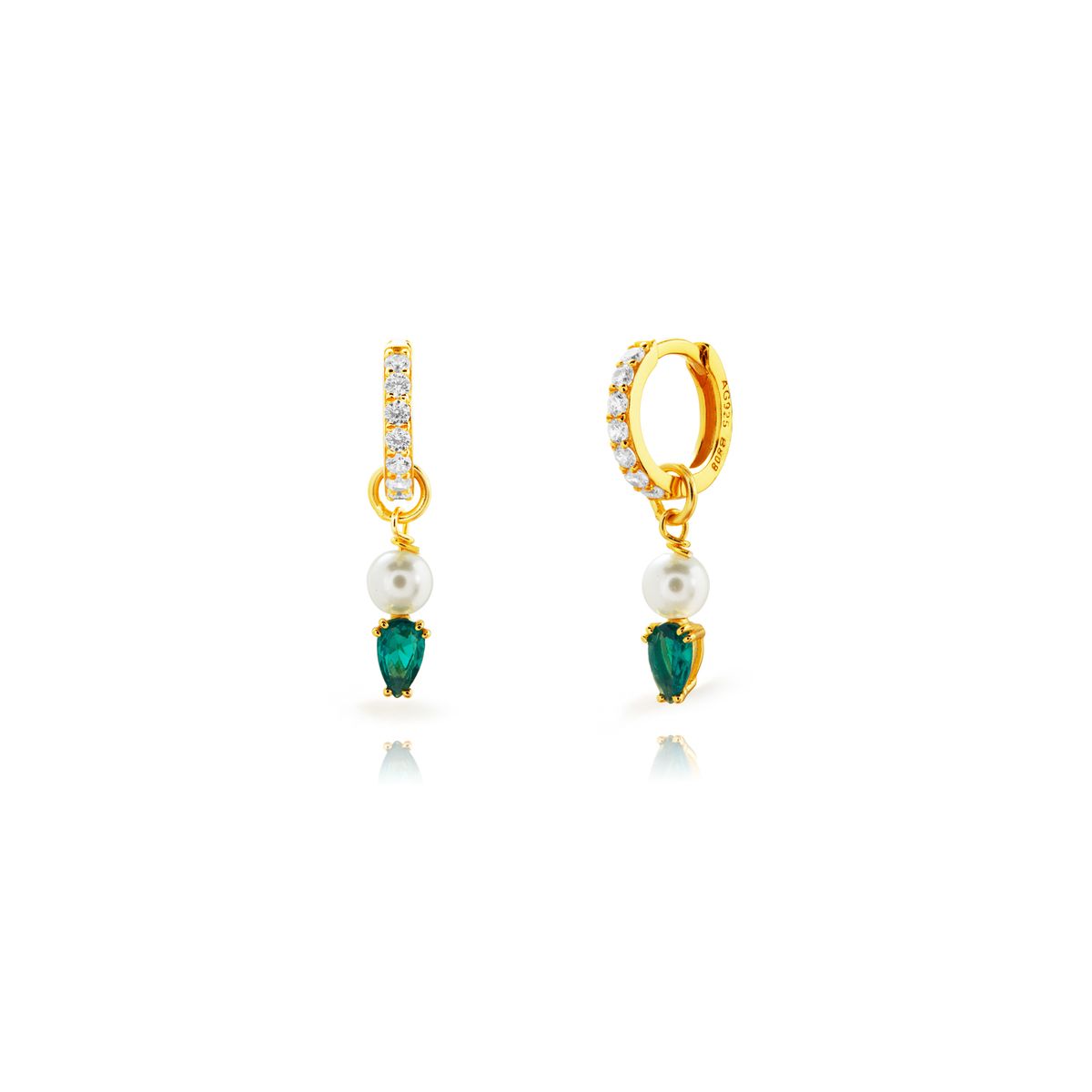 Pendientes Plata Dorada 11x10mm PEZ1634DOZV Aro Colgante Circonita Verde Perla