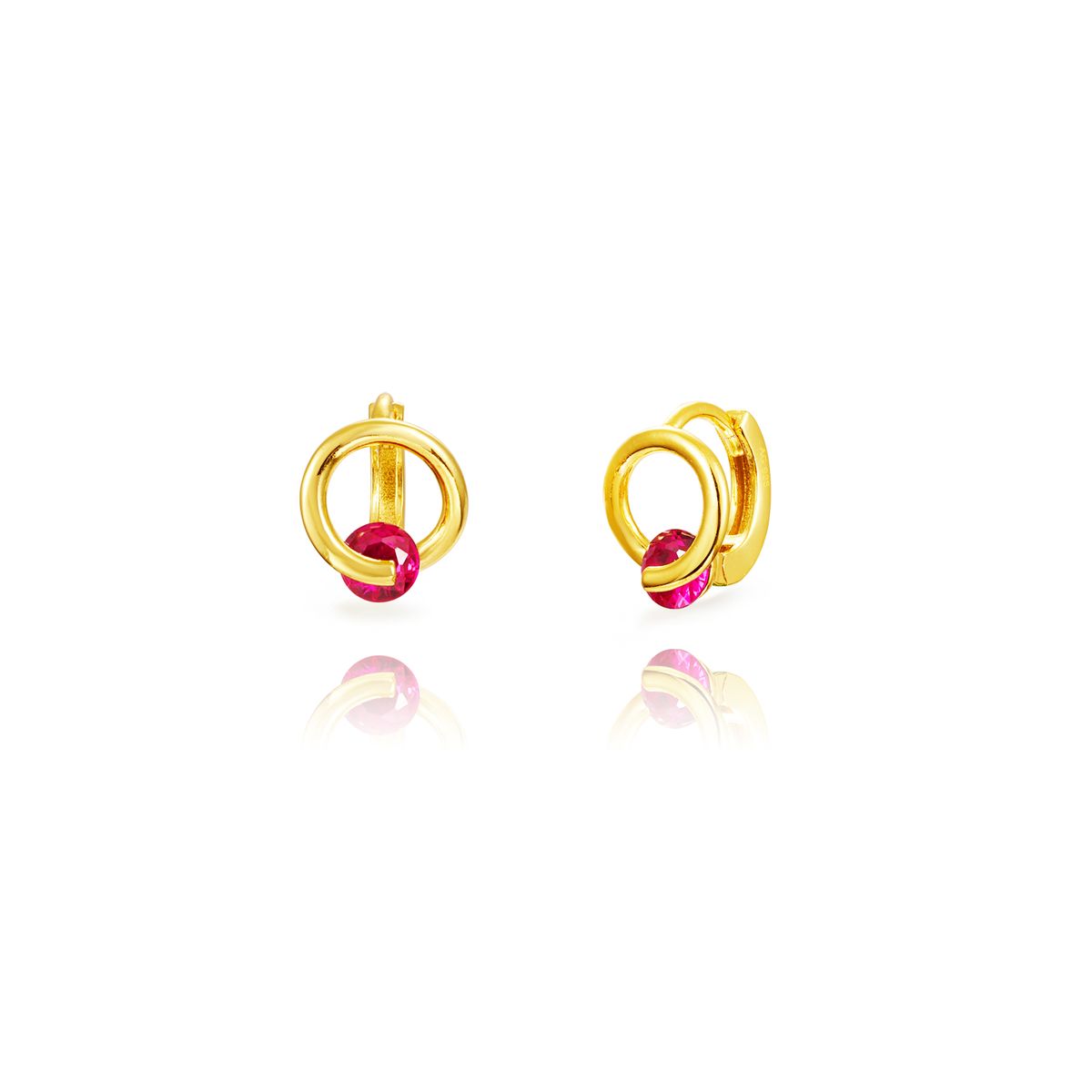 Pendientes Plata Dorada 12mm PEZ1684DOZR Aro Espiral Circonita Rubí