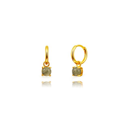 Pendientes Plata Dorada 5,5mm PEM0318DOLA Aro Colgante Mineral Labradorita Cuadrado