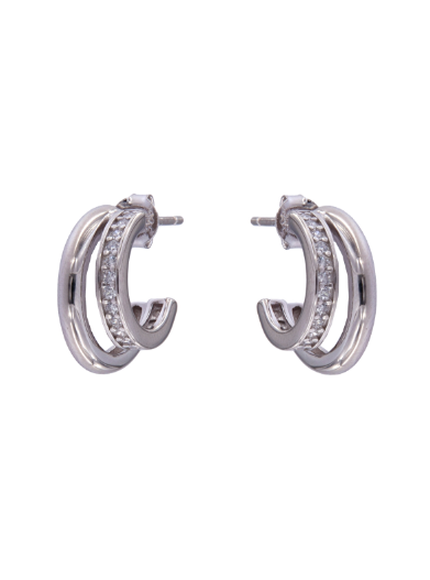 Pendientes Plata Mujer PPAC149 Aro Abierto Doble Banda Circonitas