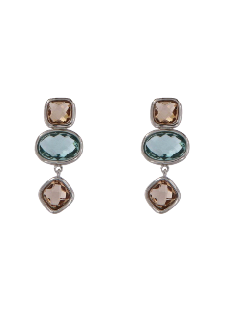 Pendientes Plata Mujer PSET167/1 Colgante Circonitas Azules Bicolor Champagne