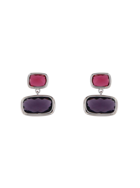 Pendientes Plata Mujer PSET172/1 Circonitas Rojas Colgante Circonitas Moradas