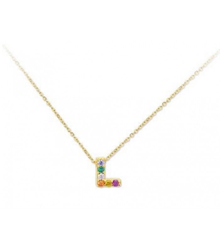 Penjoll Plata Daurada 1cm Liska Dona LET02CL-LD Penjoll L Circonites Multicolor