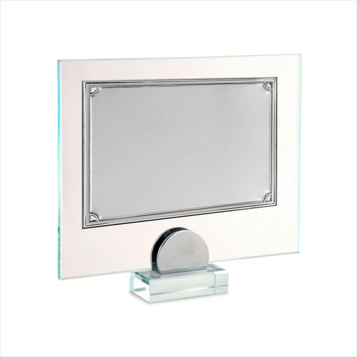 Placa Homenaje Cristal-Aluminio 24x19cm P-2273/2C Pie Chapa Detalles Esquinas