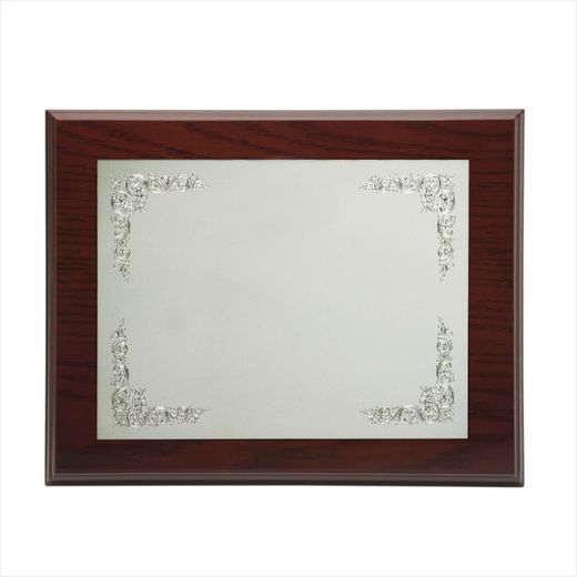 Placa Homenaje Madera-Alpaca 23x19cm P-2013/2A Detalles En Esquinas - Estuche Incluido