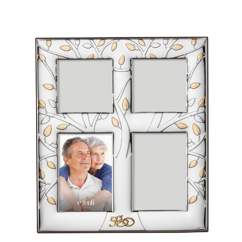 Portafotos Aniversari 20x25cm EV9240/25C Aliances Arbre De la Vida 50 Anys. Portafotos commemoratiu amb arbre de la vida de 50 anys de casaments. Espai per a 4 fotos. Records d´aniversari de noces. Mides 20x25cm. Ref EV9240/25C