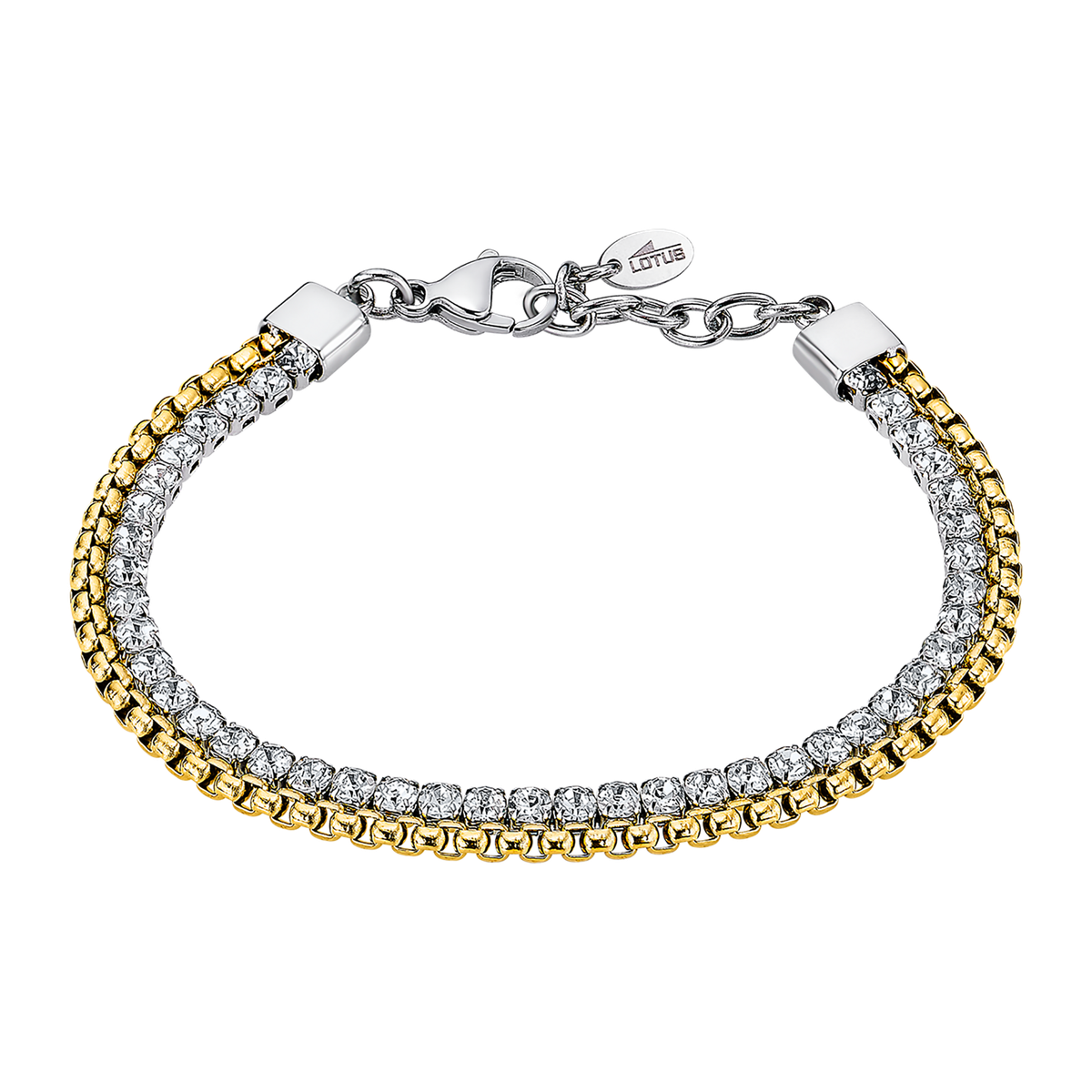 Pulsera Acero Bicolor Dorado Lotus Style Mujer LS2577-2/2 Circonitas. Pulsera fabricada en acero inoxidable bicolor dorado. Diseño de circonitas. Cierre mosquetón. Medida 16-18cm. Certificado de autenticidad y garantía de calidad en los materiales de fabricación. Ref LS2577-2/2