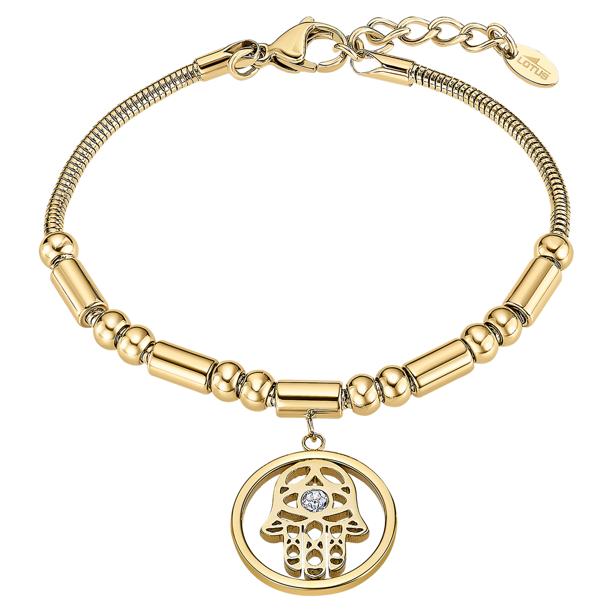 Pulsera Acero Dorado Lotus Style Mujer LS2465-2/2 Mano De Fátima Circonitas