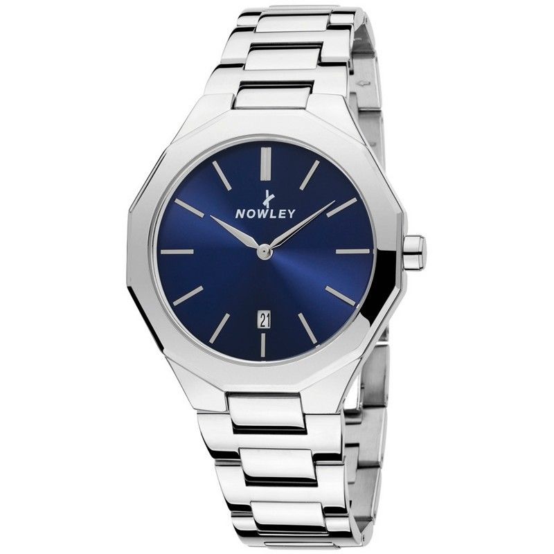 Rellotge Nowley Home 8-0029-0-3 Acer. Caixa acer 42mm. Braçalet acer. Esfera blau marí i agulles platejades. Calendari. Quartz. Submergible 30m. 3 anys de garantia. Ref. 8-0029-0-3.