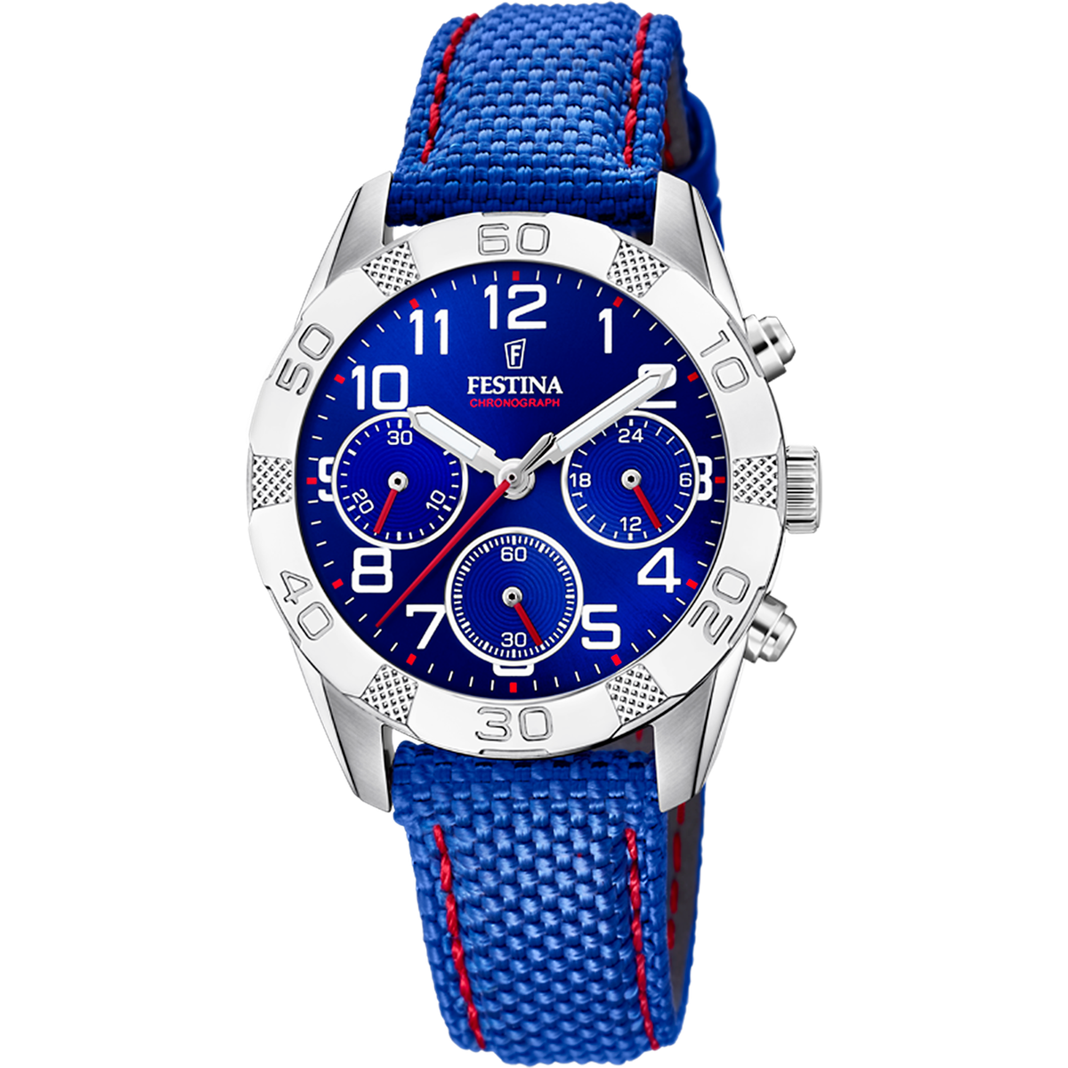 Reloj Festina Infantil F20346/2 Piel Azul Cronógrafo Acero Analógico