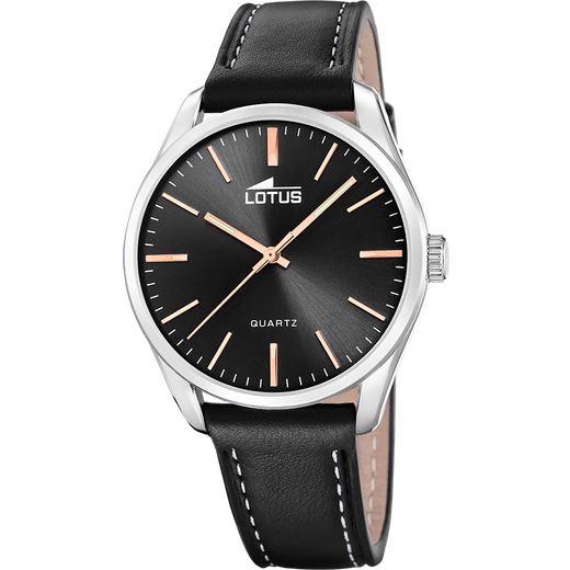 Reloj Lotus Hombre 19065/4 Piel Negra Acero Analógico. Caja de acero de 42mm de diámetro. Bisel plateado. Correa de piel negra. Cierre hebilla. Esfera negra. Cristal mineral. Movimiento quartz. Sumergible 50m. Peso 51,84gr. 3 años de garantía. Ref 19065/4