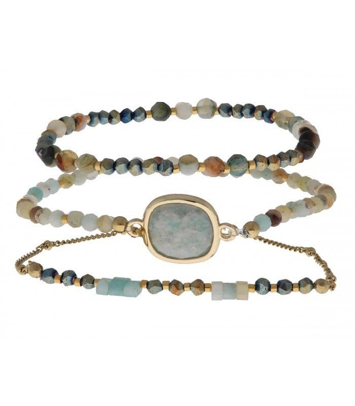 Set 3 Polseres Acer Daurat Liska Dona SHA179 Pedres Naturals Multicolor