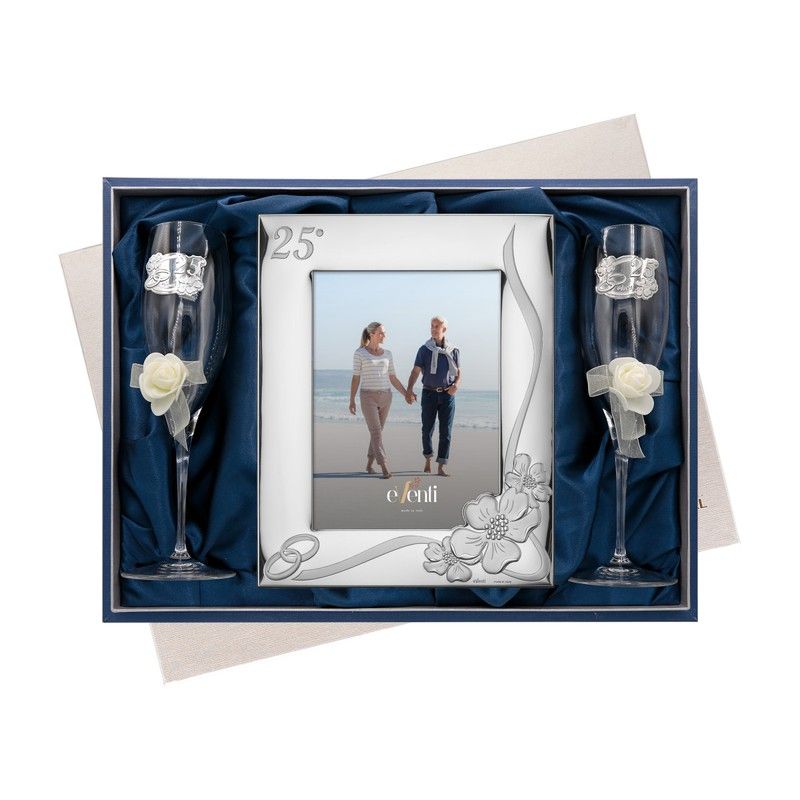 Set Portafotos Copes 18x24cm Aniversari EV9073/03V Aliances Roses 25 Anys. Set de portafotos i copes commemoratiu de 25 anys de casaments amb roses. Records d´aniversari de noces. Mides 18x24cm. Ref EV9073/03V