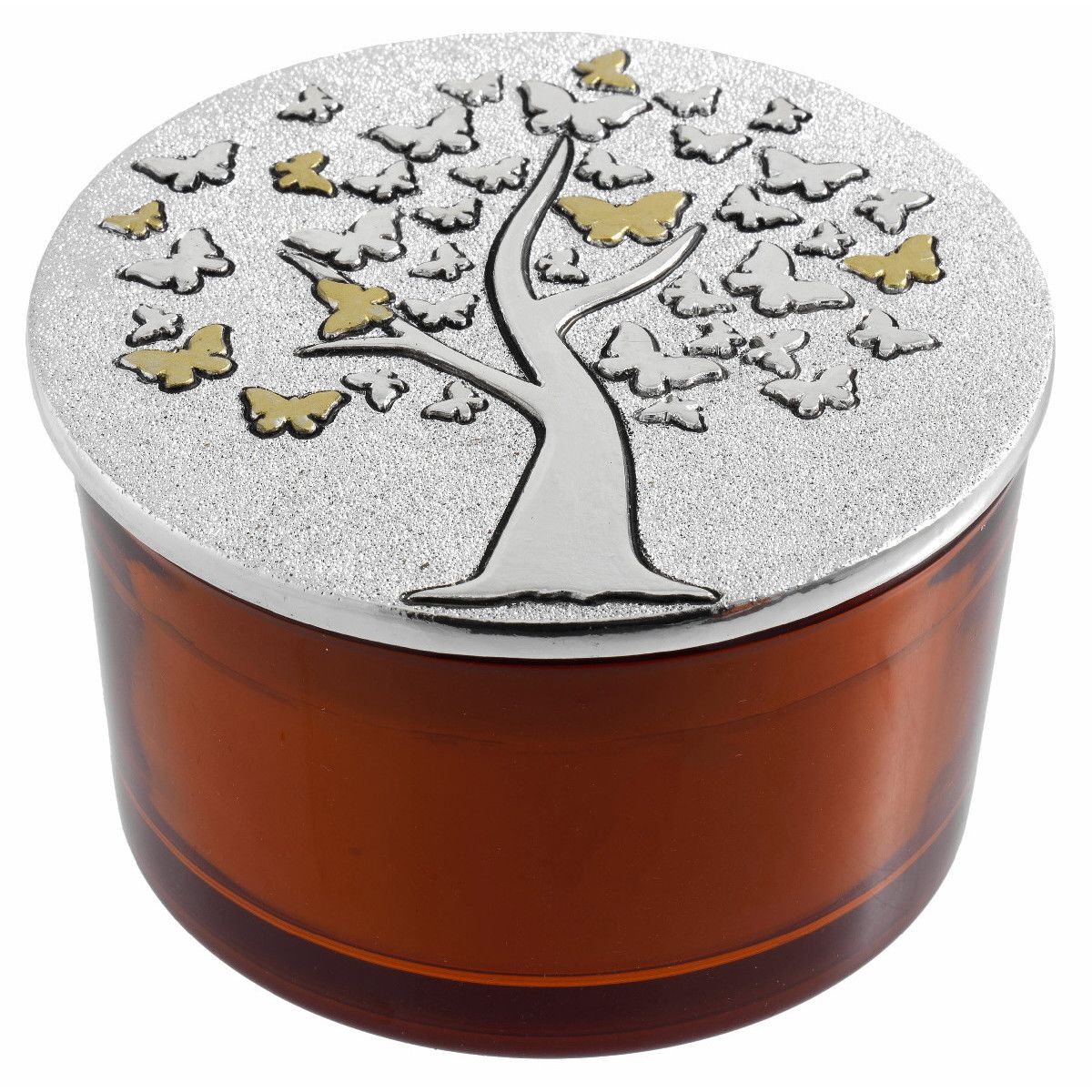 Vela Perfumada Redonda 10x6cm 2218-05 Anaranjada Detalle Floral Aroma Azahar