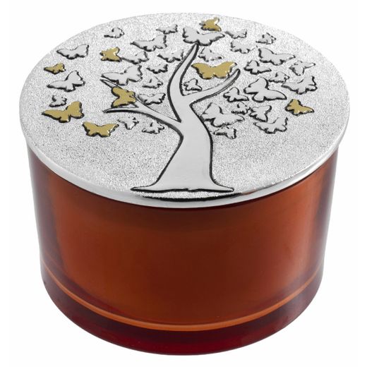 Vela Perfumada Redonda 13x8.5cm 2218-06 Anaranjada Detalle Floral Aroma Azahar